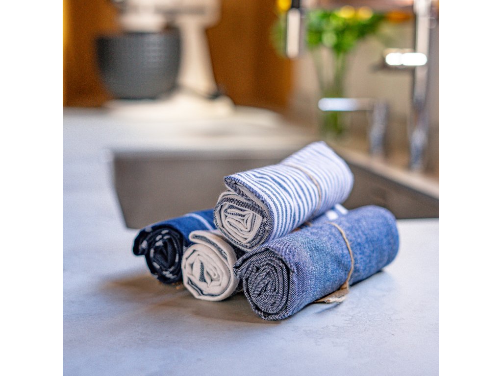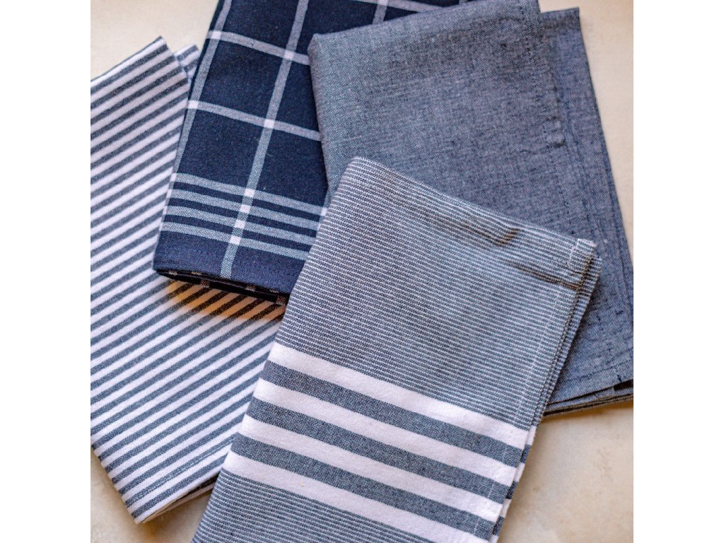 - Jsou tak krásné, jak jen utěrky mohou být. V každé sadě je jedna v provedení šambré, jedna kostkovaná a dvě pruhované. Když skončíte s vařením, stačí je přehodit přes dřez nebo pověsit na viditelné místo, protože takový stylový doplněk rozhodně schovávat nemusíte. Ani před hosty.