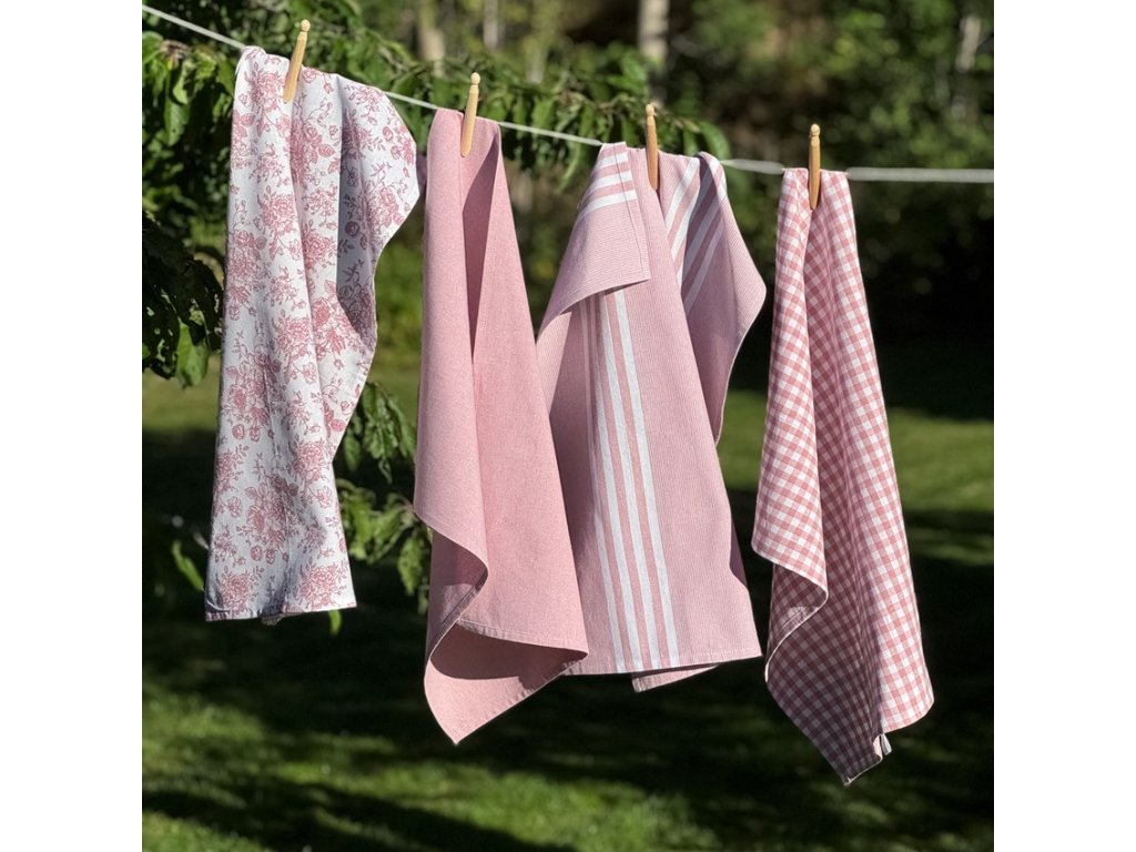 - Jsou tak krásné, jak jen utěrky mohou být. V každé sadě je jedna v provedení šambré, dvě kostkované a jedna pruhovaná. Když skončíte s vařením, stačí je přehodit přes dřez nebo pověsit na viditelné místo, protože takový stylový doplněk rozhodně schovávat nemusíte. Ani před hosty.