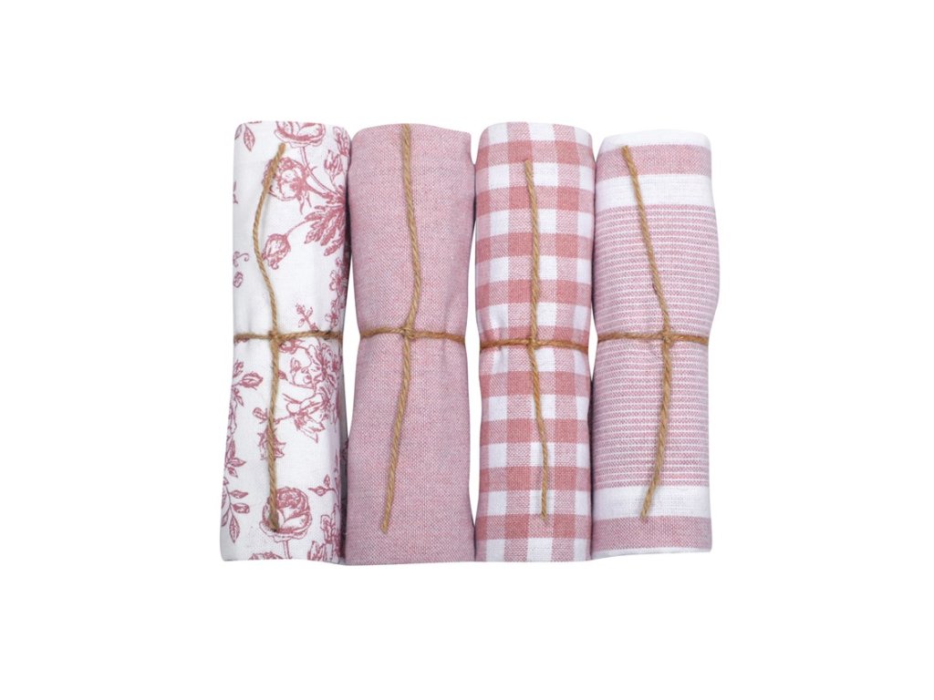Kuchyňské utěrky s květinovým vzorem v barvě světle růžová / bílá